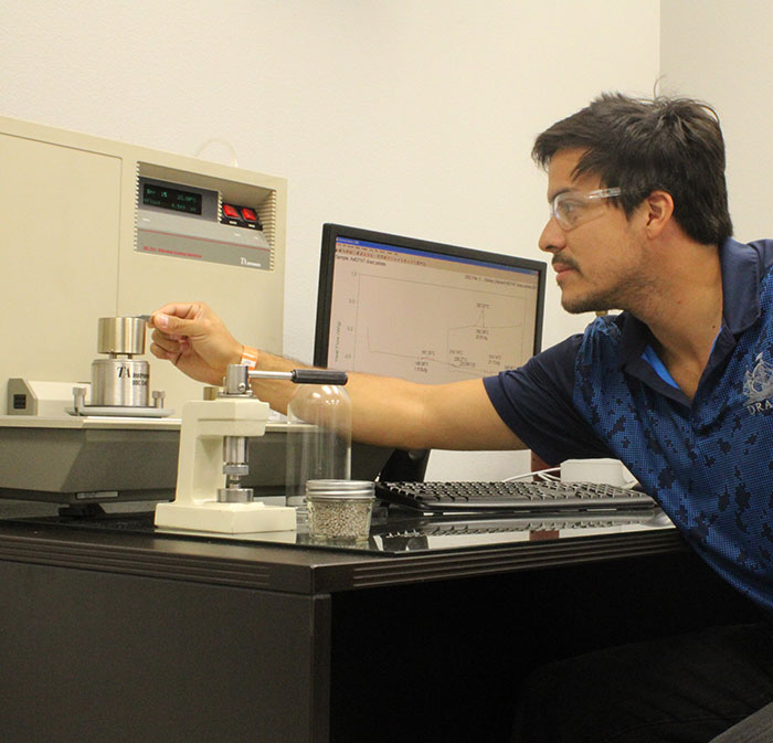 - DSC (calorímetro diferencial de barrido) para perfilar las propiedades térmicas de los materiales